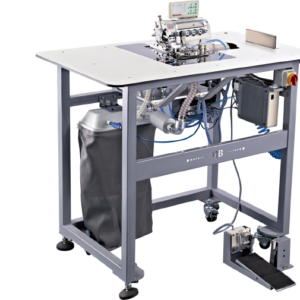 Máy may túi quần jean tự động MB1002C-BR-1-BAS311HN là dòng máy dán túi hoàn toàn tự động từ công đoạn gấp ủi tới may thành túi.
